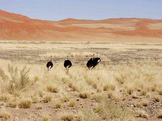 Ostrich roam the desert